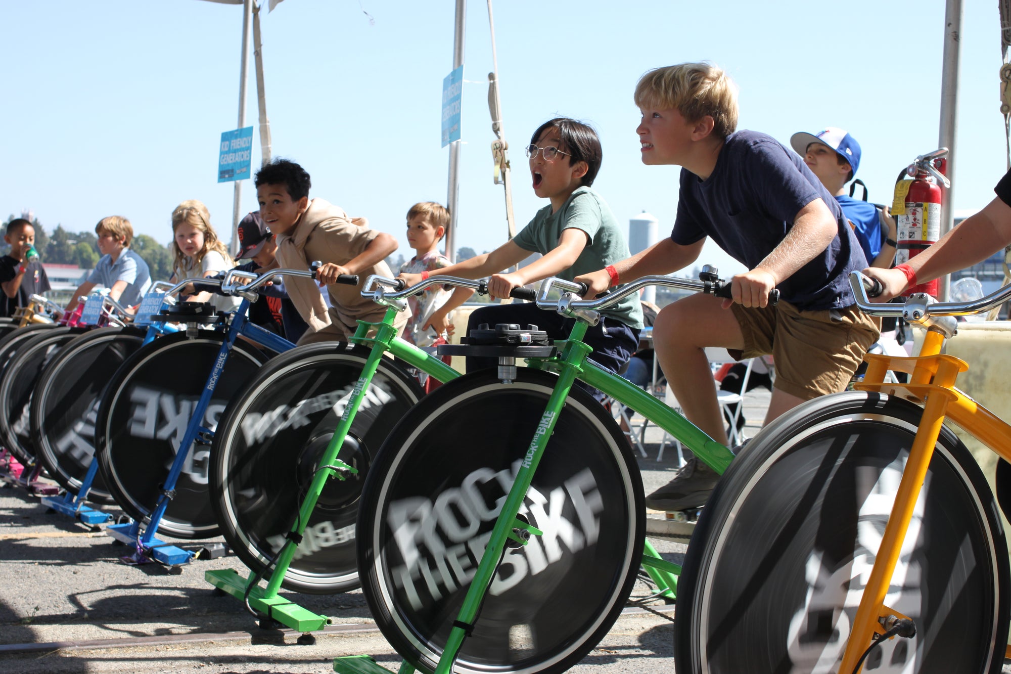 We’ve developed custom circuitry to show people how hard to pedal, displays that celebrate the group’s accomplishment of energy saved, a Line Array rig capable of being transported by bike, and bikes sized for kids. We know how much power we can expect from different age groups, and this helps us involve kids, teens, and adults, so we can truly welcome all in a community effort.