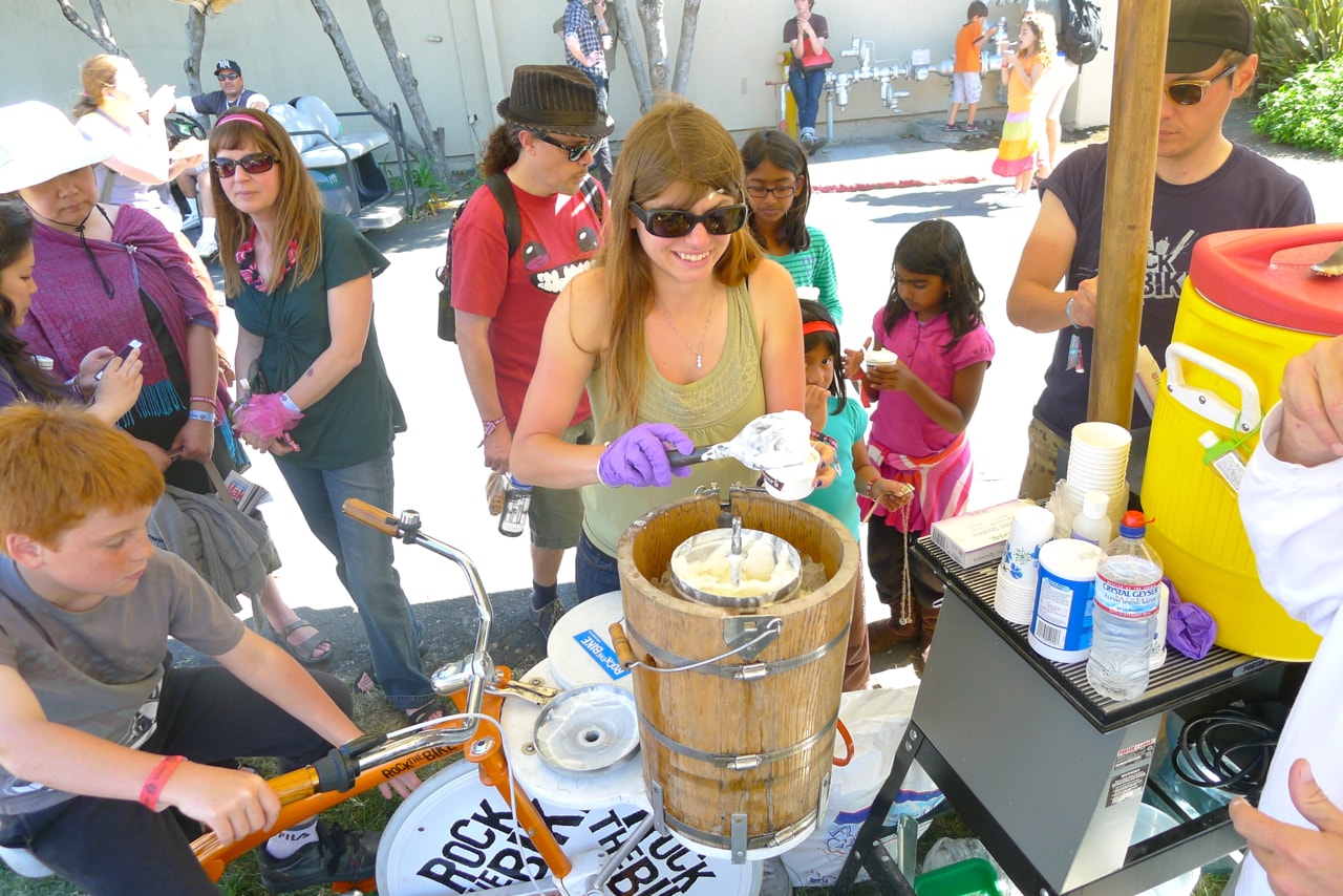A stationary bike dedicated to making ice cream