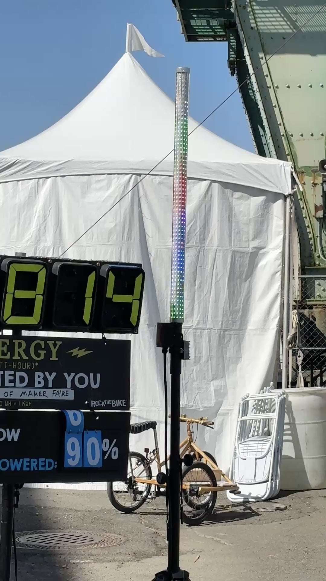This precisely calibrated system uses color-coded LED lights to display pedaling effort. Different colored sections correspond to dangerously low, dangerously high, and ‘sweet spot’ voltages. The Pedalometer is carefully calibrated to your Pedal Powered Stage system. In The Box: